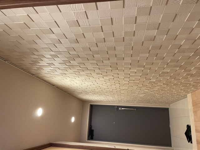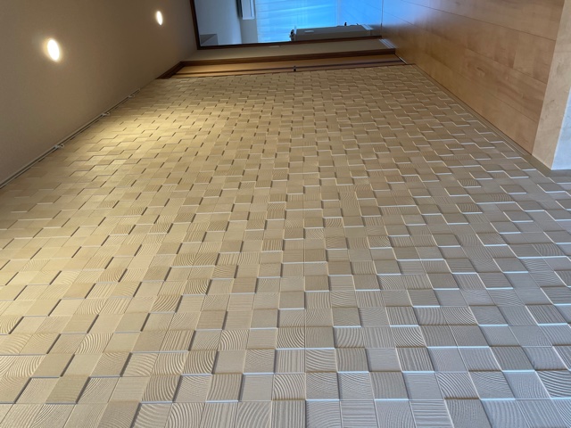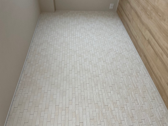 | 施工個所 | リビング(グラナスヴィスト)・玄関(パールマスクⅡ 突き付け貼り)・トイレ一部へサービス施工(ヴィーレ) |