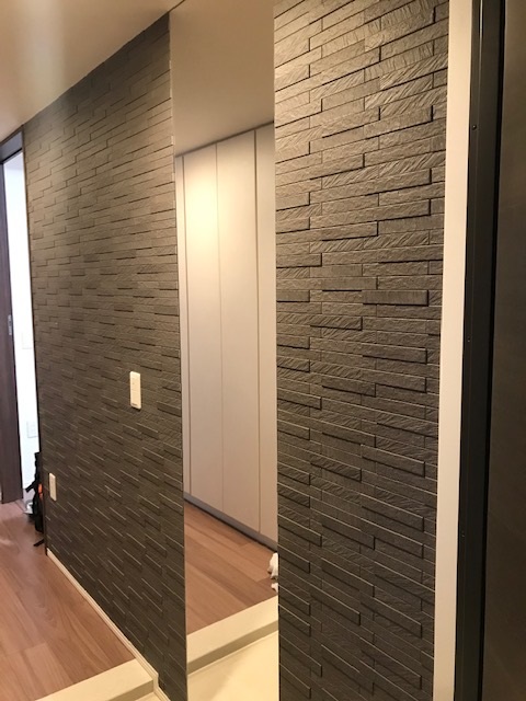 | 施工個所 | リビング(ラフクォーツ こちらはモジュール設計をされた商品となりますので、タイルの上下左右には1mmの隙間を空けた施工となります。)・玄関(グラナスルドラ)・洋室(フェミーナ 突き付け貼り)・トイレ(サービス施工) |