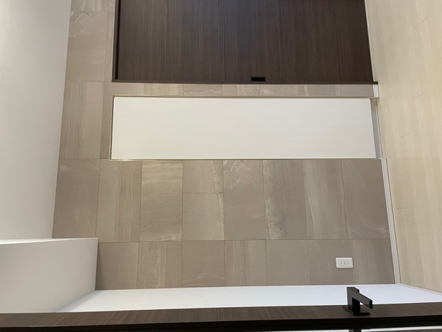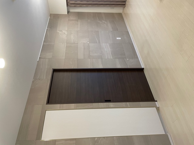 | 施工個所 | リビング(ストーングレース イモ貼り こちらはモジュール設計をされた商品となりますので、タイルの上下左右には1mmの隙間を空けた施工となります。) |